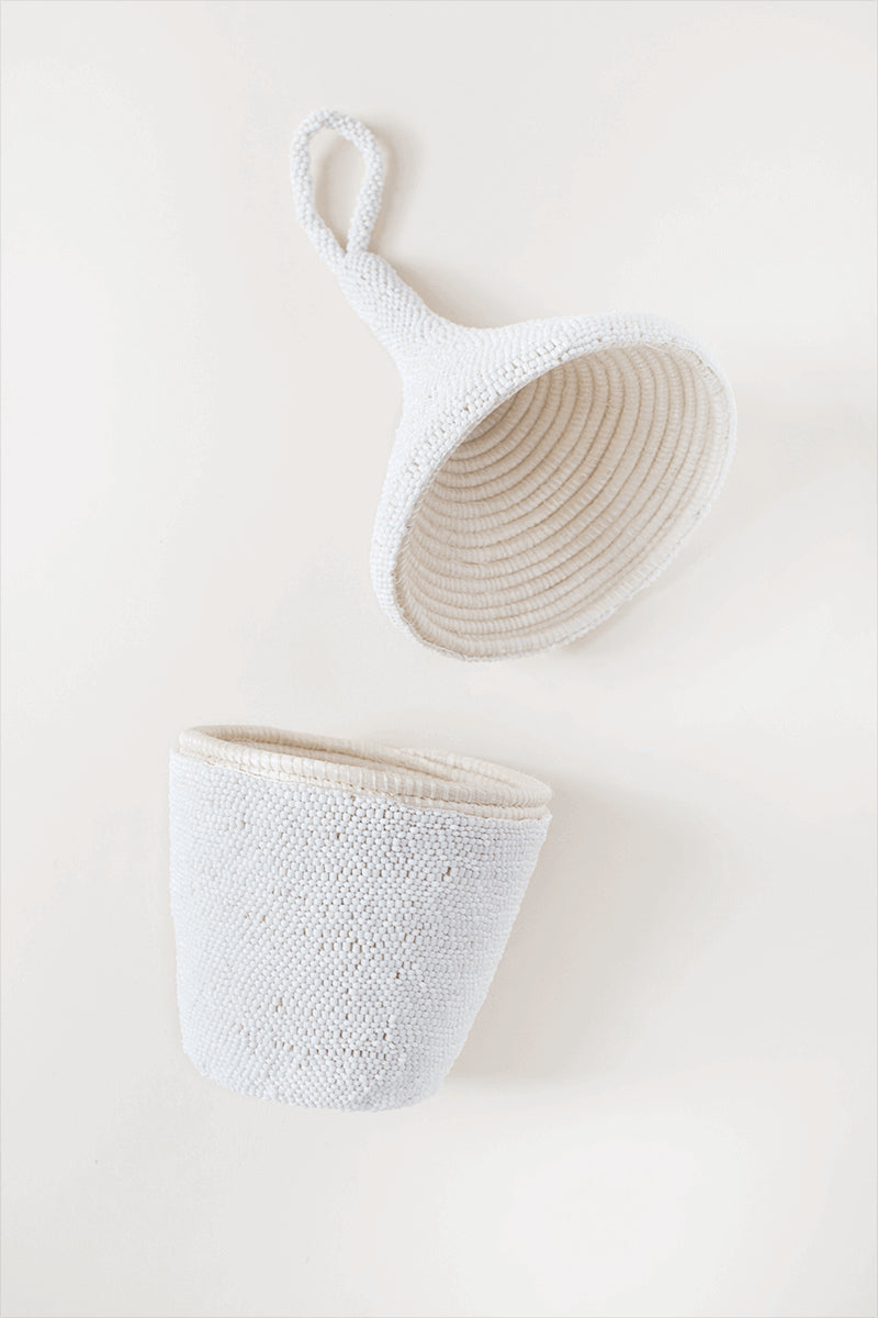This beautiful home accent is intricately hand-beaded with care in Rwanda. Beaded Peace Basket can be used to keep candies in it. 6" W x 11" H x 6" D White Locally sourced beads Woven sisal interior Peace baskets represent the generosity, compassion, and forgiveness that helped Rwanda rise towards a bright future This peace basket can be used to store small items, such as your keys, or simply as a decorative home decor piece. Impact The artisan sector is the second largest employer in the developing world. Yet the majority of artisans are women who lack access to export markets, business skills, and the financial tools needed to run successful, global enterprises. We are dedicated to changing that by investing 100% of our profits into education programs for the women who handcraft our products and youth in their communities. Since 2007, we've provided over 1,100 artisans and 250 young people in Rwanda & Ghana with employment opportunities, entrepreneurship training, and consistent access to the global export market. That's Impact. Care Instructions spot clean **Due to the handmade quality, some size and color variation may occur.