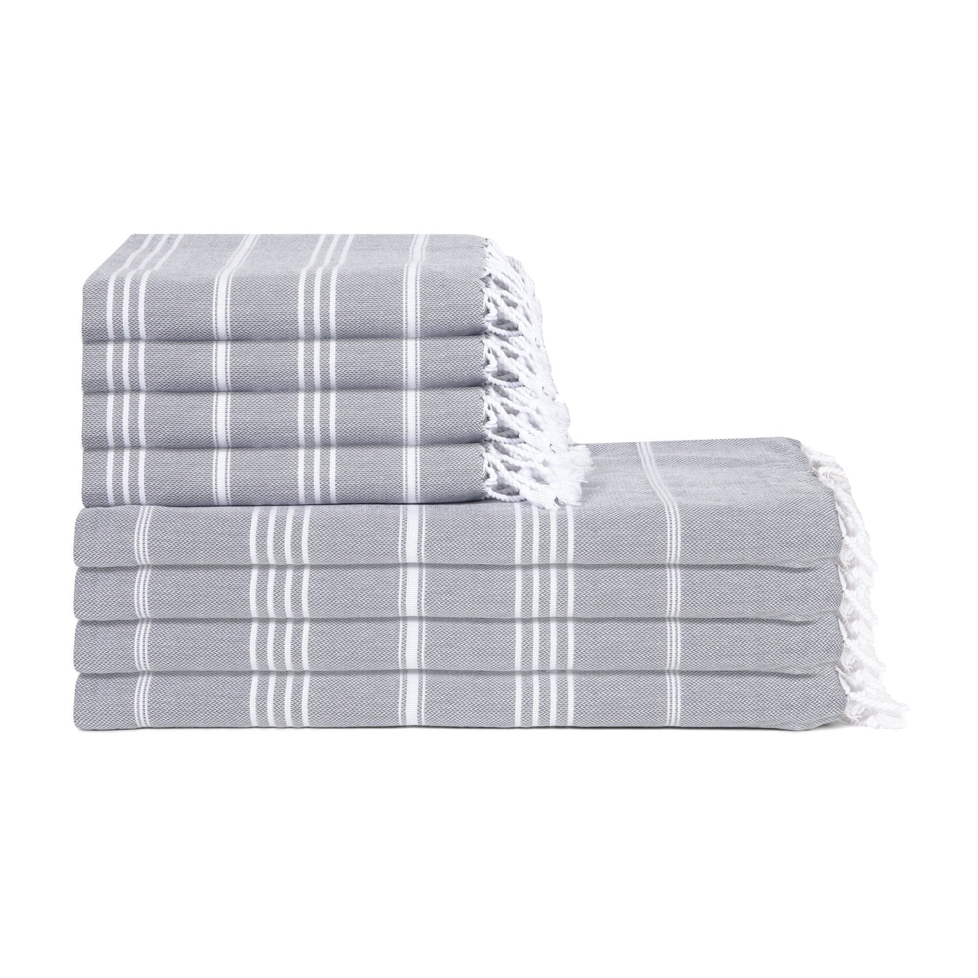 Hand loomed from the finest Turkish cotton using the same weaving techniques perfected by generations of craftsmen in Denizli. The high quality yarn dyed cotton along with the weaving techniques used allow Bodrum Turkish Towel Bundle to be extremely absorbent, quick drying and ultra lightweight. This set is a perfect addition to your master suite or guest bathroom.
