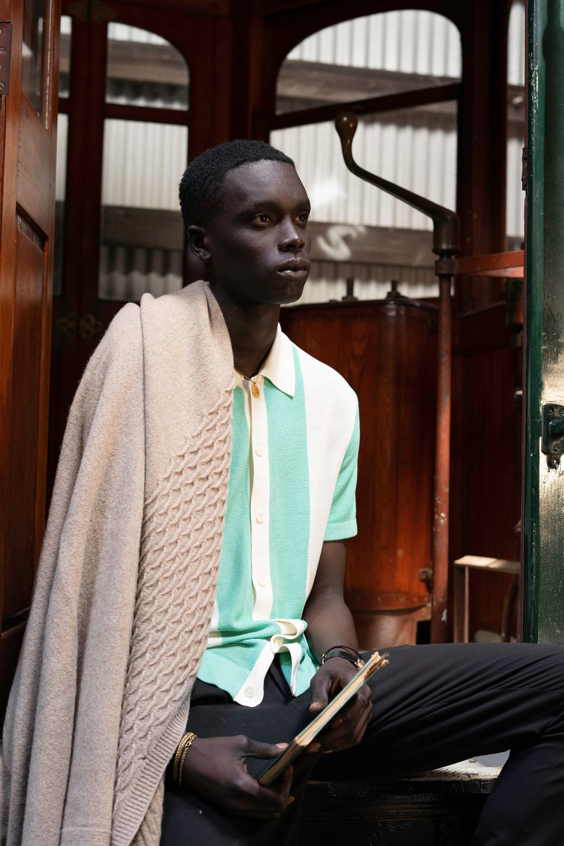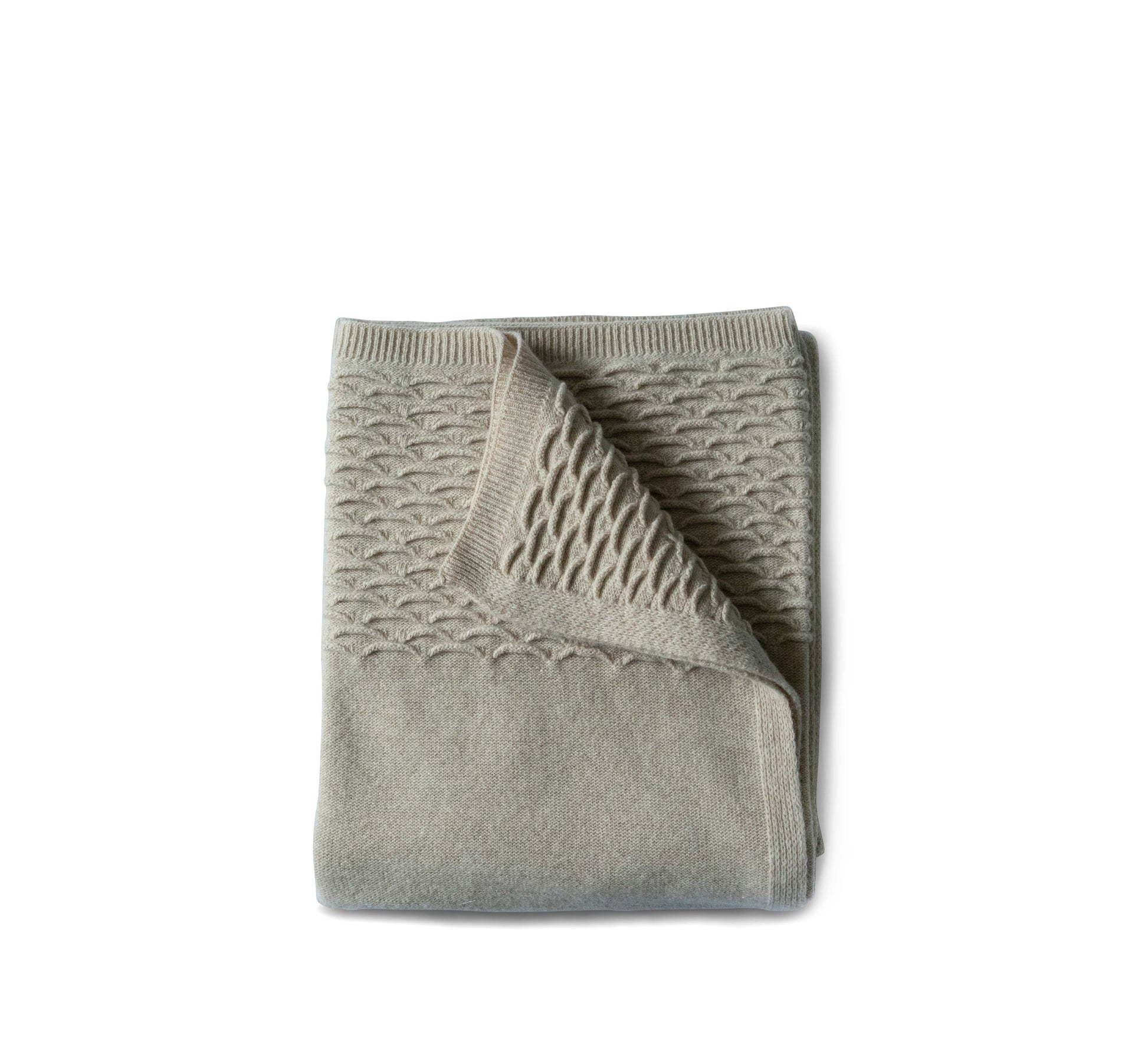 Super soft 'hand' of lambswool. Unique scallop texture. Has the energy of a treasured knit sweater.