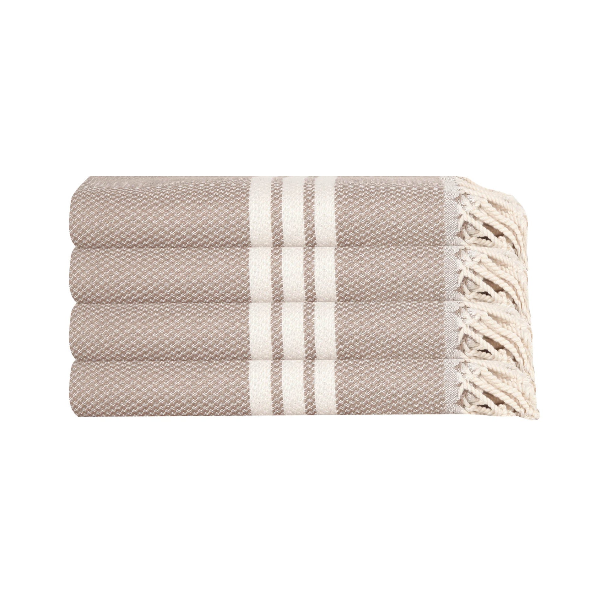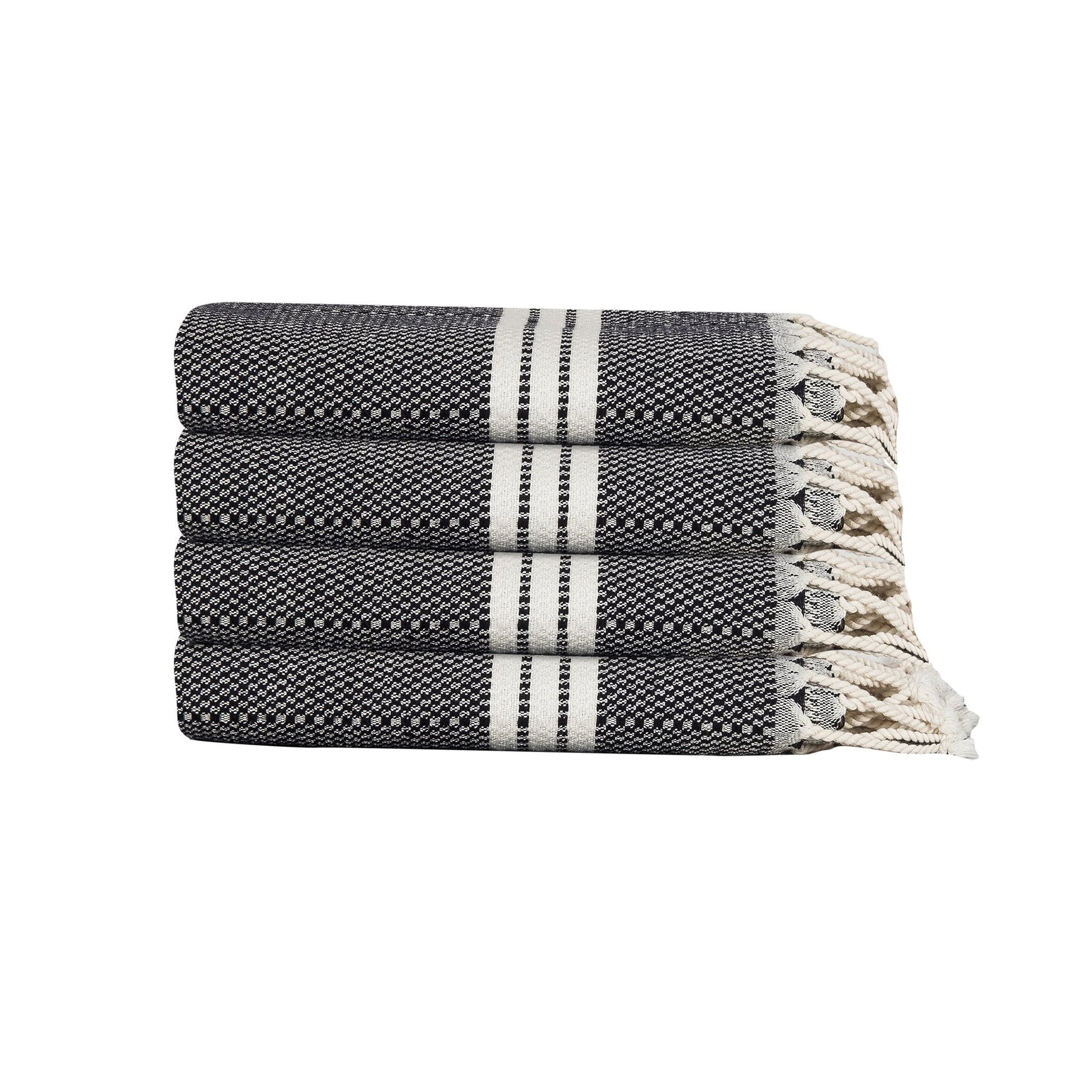 The Newport Turkish Hand / Kitchen Towel Bundle is handwoven from the finest Turkish cotton fibers. It has black dots on natural cotton color. The fringes are all hand tied with exposed threads adding to the heirloom appeal of this towel.